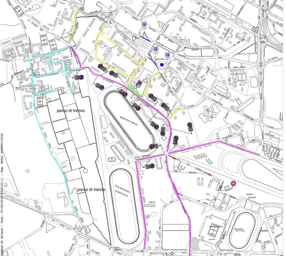 Confermati anche i divieti di sosta temporanei già assunti nel 2024 in via Ippodromo (tra via Patroclo e via Pinerolo dalle 20 del giorno prima dell’evento alle 7 del giorno successivo, con una corsia di marcia garantita) e, dalle 7 alle 7, via Montale (tra via Ippodromo e via Omodeo), via Lampugnano (tra via Omodeo e via Mafalda di Savoia), va Mafalda di Savoia e via Omodeo (parcheggio interno al parco Vieira de Mello, consentiti motocicli e velocipedi). Confermati i sensi unici in via del Centauro (verso via Fetonte) e via Fetonte 8verso via Pegaso) durante i concerti. Confermata anche la chiusura della pista ciclabile in via Montale e via Lampugnano, dalle 12 alle 7, con obbligo di condurre a mano la bicicletta usando lo spazio pedonale. Infine confermata l’area adibita alla sosta di veicoli per persone disabili accreditate in via Lampugnano 80, nell’area parcheggio davanti alla scuola.