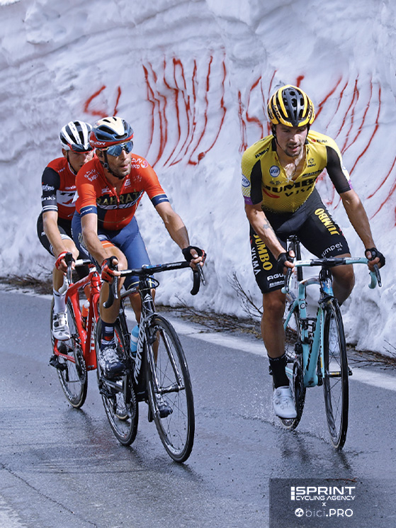 Il giorno dopo, nel continuo marcarsi, i due perdono di nuovo terreno nei confronti di Carapaz. A Courmayeur, negli ultimi chilometri, i più facili, Roglic e Nibali sono praticamente fermi, e l’ecuadoriano va a vestirsi di rosa. Rosa che terrà fino a Verona.