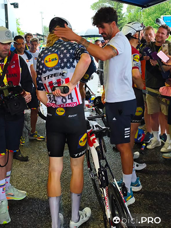 Da domani inizierà la parte più dura. Per due giorni, il suo orizzonte sarà quello intermedio del traguardo a punti e poi ci sarà soltanto da entrare nel tempo massimo. Dopo gli abbracci e le parole di oggi, siamo certi che la Lidl-Trek sia pronta a dare anche l’anima per portare a casa il terzo obiettivo di questo Tour.