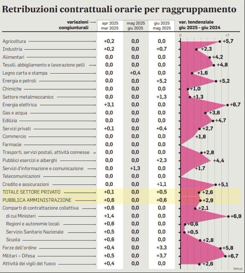I numeri diffusi dall’Istat, intanto, raccontano una situazione nella quale le buste paga crescono anche se, in termini reali, la strada da percorrere per colmare il gap di potere d’acquisto con i livelli del 2021 è ancora lunga. La sfida è recuperare quanto eroso dall’inflazione negli ultimi anni. Alcuni passi si stanno già facendo: Istat stima che l’indice delle retribuzioni orarie registrerà un aumento medio del 2,7% tra luglio e settembre, con una crescita complessiva del 3,1% sull’intero anno.