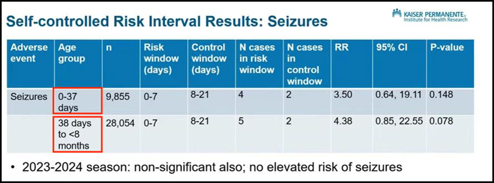 Il CDC ha quindi mostrato i dati di sorveglianza post-marketing del Vaccine Safety Datalink (VSD), relativi al nirsevimab (anticorpo Sanofi già approvato). La presentazione, affidata a Matthew Daley (Kaiser Permanente Colorado, organizzazione finanziata da Sanofi), ha mostrato grafici in cui compariva anche l’esito più discusso: le convulsioni.