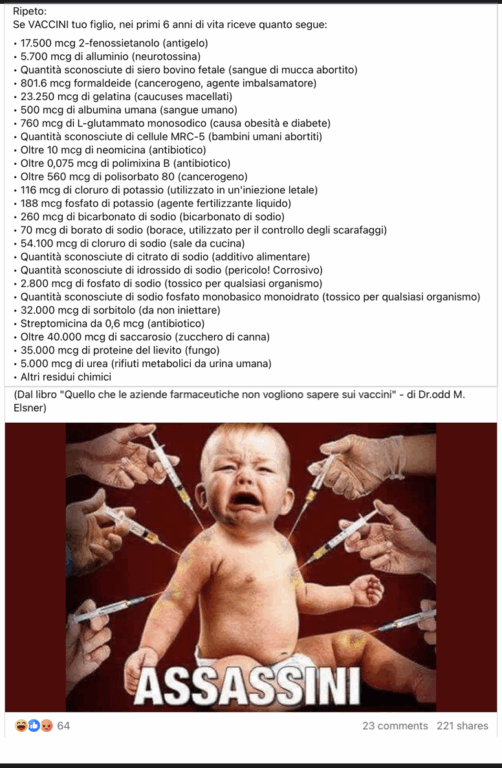 Abbiamo visto che la ricetta del contenuto dei vaccini non si basa su fonti accurate e spesso alcuni “ingredienti” vengono decontestualizzati e distorti.