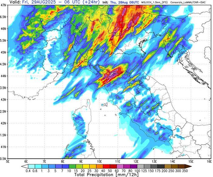 Ecco quindi che il pericolo di alluvioni lampo o allagamenti potrebbe concretizzarsi specie sulle aste fluviali (Seveso, Lambro) e torrentizie minori; sulle zone di collina e montagna inoltre potrebbero attivarsi delle pericolose frane. Massima attenzione anche sulla Toscana dove sono previsti fortissimi temporali con serio rischio di downburst, le violente di vento ad oltre 120 km/h in particolare sulle province di Massa Carrara, Pisa e Livorno; lungo le coste non escludiamo la possibilità di mareggiate.