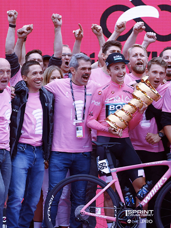 «Abbiamo tre italiani giovani e forti», prosegue Hindley. «Giulio ha un grande talento e sono certo che sarà una delle stelle del vostro movimento ciclistico per il futuro. In più, è anche un bravissimo ragazzo, così come Matteo e Giovanni, che sono sempre molto disponibili».
