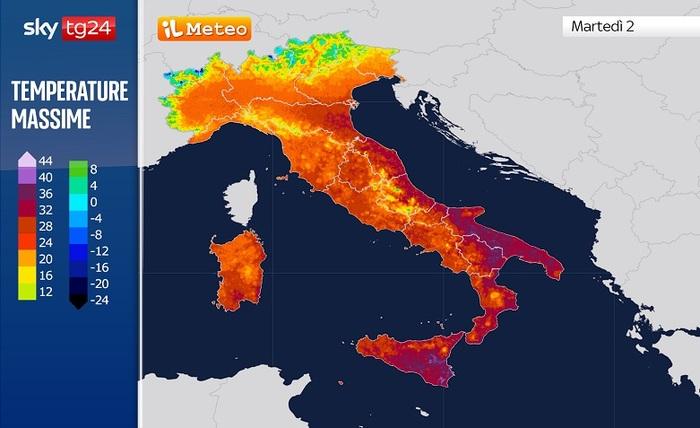 Farà molto caldo anche sul resto del Sud con picchi prossimi ai 34/36°C.Temperature massime previste per Martedì 2 SettembreDA META’ SETTIMANA CLIMA GRADEVOLE PER TUTTI