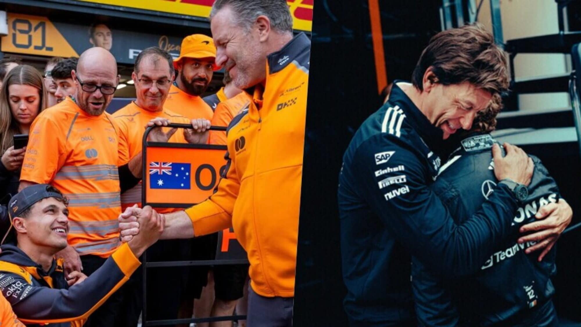 Meno virale sui social ma carica di un significato che vale la pena sottolineare è stata la fotografia che ritrae Lando Norris e Zack Brown mentre si stringono la mano dopo la gara durante il momento della foto di rito del team con Oscar Piastri, vincitore del GP.