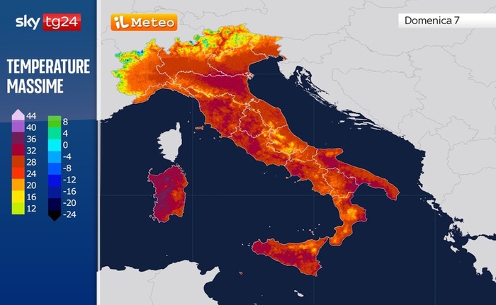 Temperature massime previste per la giornata di Domenica 7 SettembreTENDENZA SUCCESSIVA