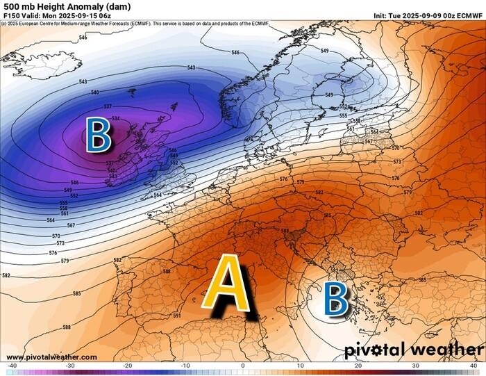 Da Lunedì 15 Settembre un vasto anticiclone (con contributi sia azzorriani, sia africani) si allungherà ancora una volta fino a raggiungere l’Europa centro-occidentale e l’Italia, regalando ancora stabilità atmosferica e un clima caldo.