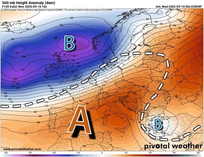 La novità principale riguarda il ritorno in grande stile di un vasto anticiclone (con contributi sia azzorriani, sia africani) già dalla giornata di Lunedì 15 Settembre. Questo campo di alta pressione si allungherà ancora una volta fino a raggiungere l’Europa centro-occidentale e l’Italia, regalando ancora stabilità atmosferica e un clima caldo.