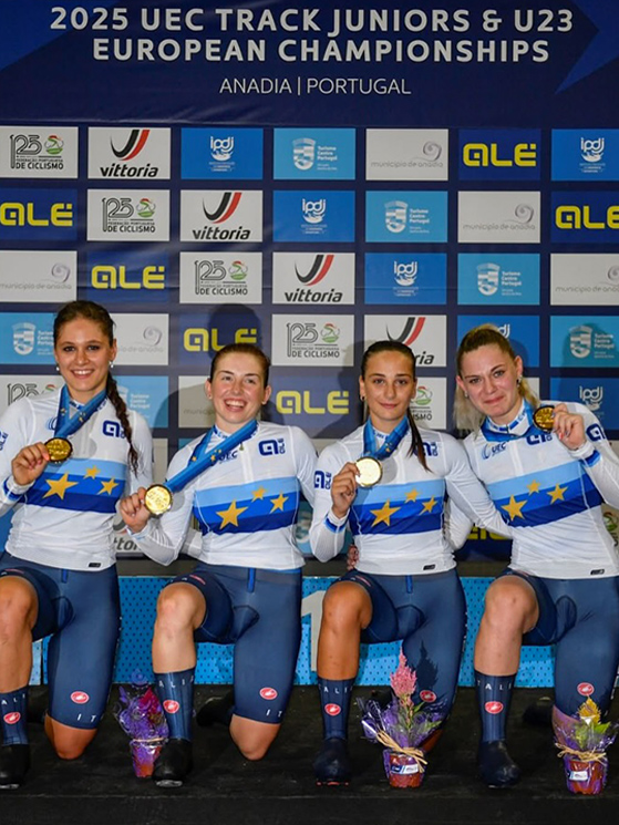 L’ultimo. Si parte da fermi e abbiamo corso con Matilde Cenci e Siria Trevisan, che ha fatto una partenza perfetta. Poi è toccato a Matilde, come sempre strepitosa, e poi è toccato a me. Abbiamo girato su bei tempi anche in finale, nonostante la pista non fosse molto calda rispetto a quella dell’europeo, che mi è parsa più scorrevole. Siamo riusciti a portare a casa questo grande risultato, che sicuramente per me è un biglietto da visita per l’anno prossimo, dato che sono ancora di primo anno. Mi piacerebbe anche vincere un titolo singolo, però farlo con loro è stato bellissimo. Anche perché Siria e Matilde hanno un anno in più e sono molto più forti di me, quindi riuscire a stare con loro è stato veramente molto bello.