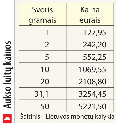 Lietuva irgi turi 5,8 tonas aukso, kuris dėl saugumo laikomas Anglijos banke Londone. Mūsų aukso atsargas sudaro 466 luitai, kurių vertė – 355 mln. Eur.