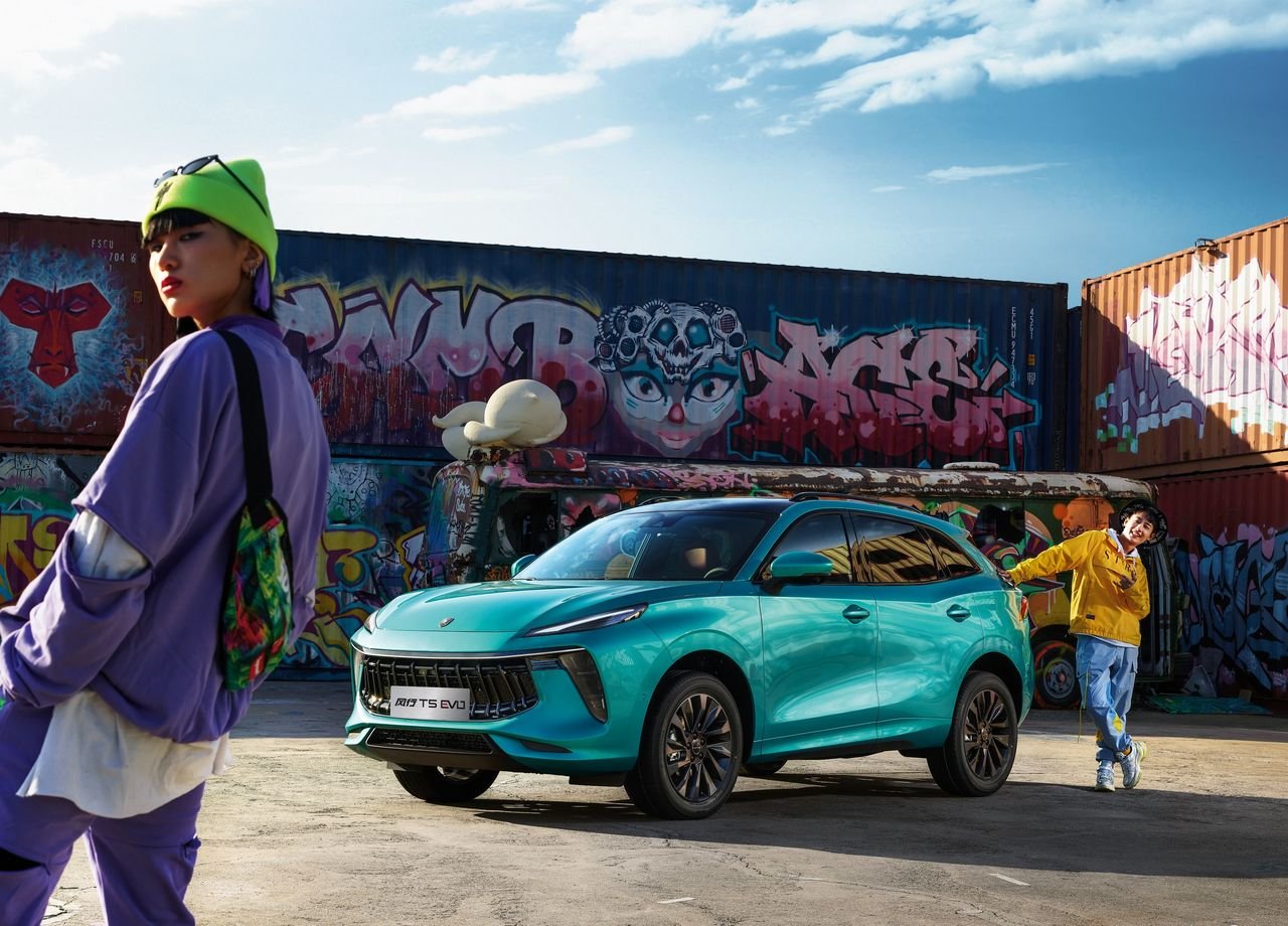 „T5 EVO“ dizaino akcentai – agresyvūs ir šiuolaikiški. Automobilio charakterį formuoja aštrūs, kampuoti priekiniai LED žibintai, sklandžiai integruoti į dinamiškas kėbulo linijas, o bendrą stilių užbaigia ir galiniai LED žibintai. Sportišką įvaizdį sustiprina galinis spoileris, kuris, pasak gamintojo, atlieka ir funkcinį vaidmenį – gerina automobilio aerodinamines savybes ir didina stabilumą važiuojant didesniu greičiu.