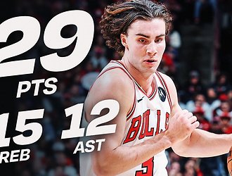 Perdavimą jam atliko Joshas Giddey, surinkęs antrą dvigubą dublį iš eilės. Tai pirmasis „Bulls“ krepšininkas, kuriam tai pavyko nuo 1989-ųjų Michaelo Jordano pasiekimo.