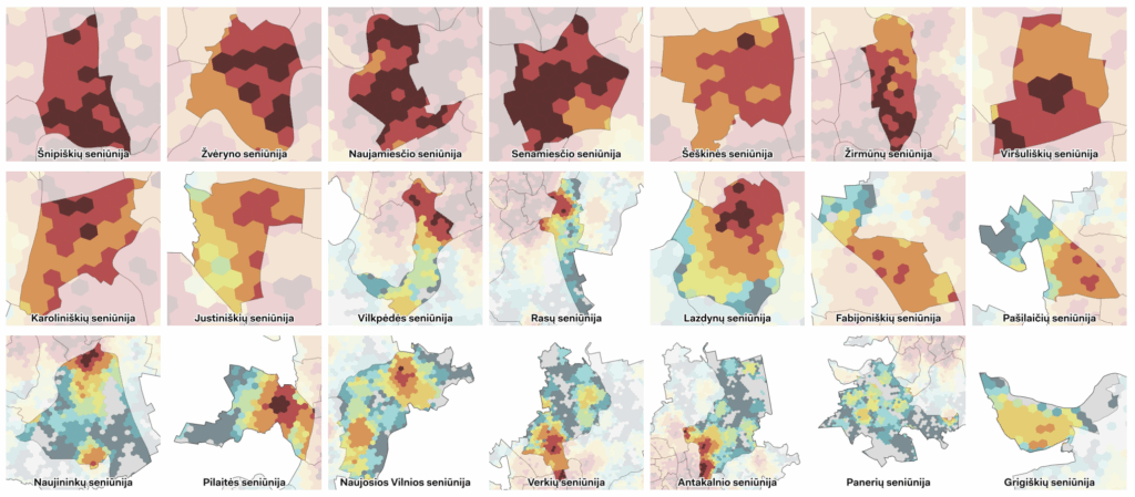 Tokiose seniūnijose kaip Antakalnis, Verkiai, Naujininkai, Rasos, Vilkpėdė dėl urbanizacijos ir gamtinės aplinkos ypatumų paslaugos išsidėsčiusios netolygiai – daugumą jų sutelktos arčiau miesto centro.