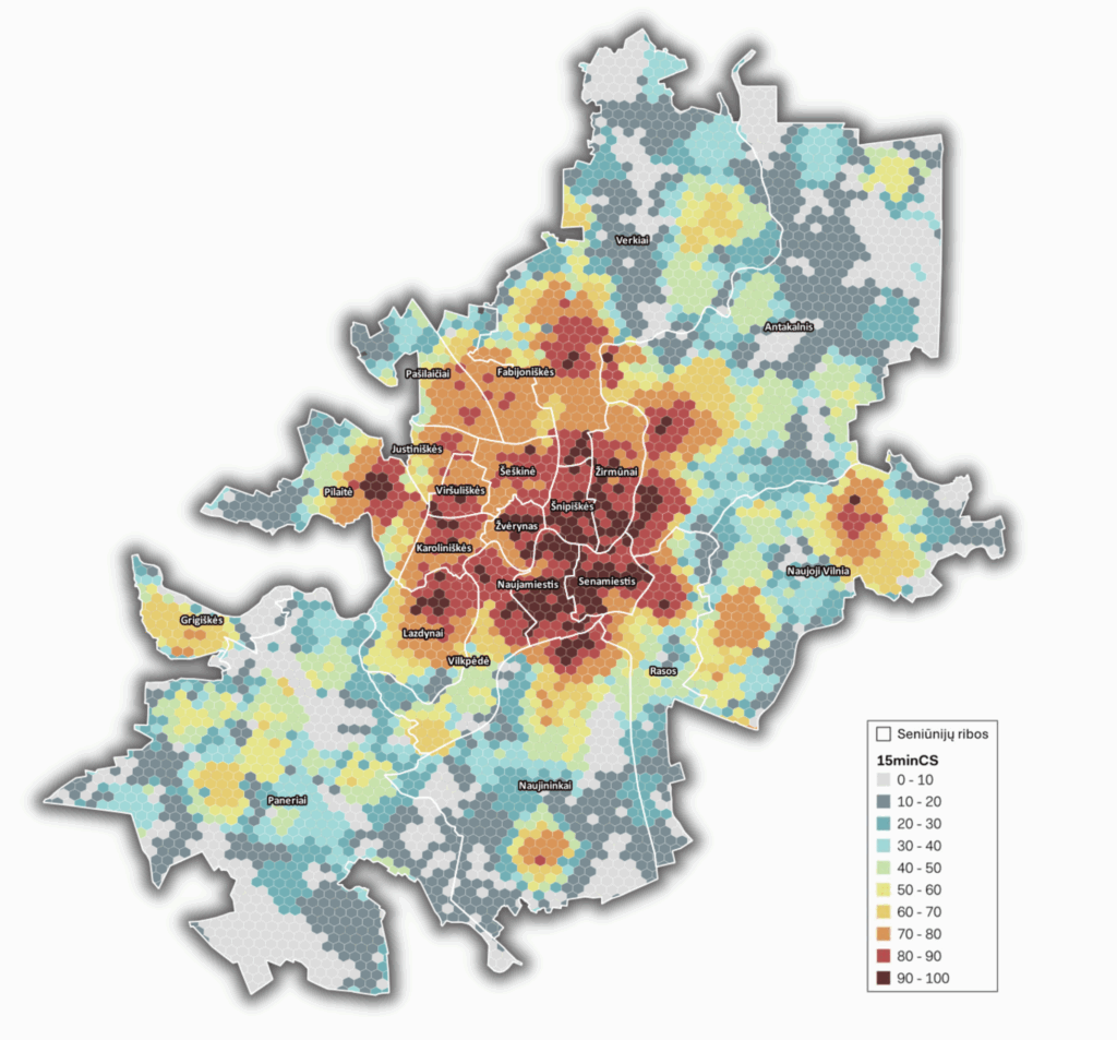 Surinkti duomenys atskleidžia, kad centriniai Vilniaus rajonai – Senamiestis, Naujamiestis, Žvėrynas, Šnipiškės ir Žirmūnai – pasižymi aukščiausiu paslaugų prieinamumo lygiu. Šios vietos jau dabar atitinka 15 minučių miesto principus – jose patogu gyventi, dirbti ir ilsėtis be būtinybės kasdien sėsti į automobilį.