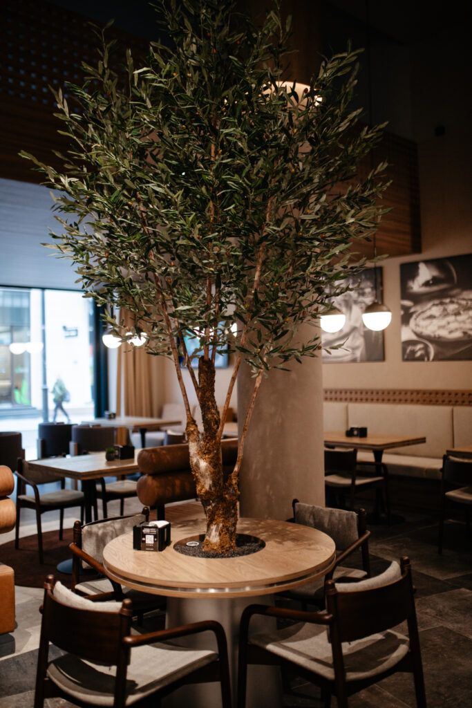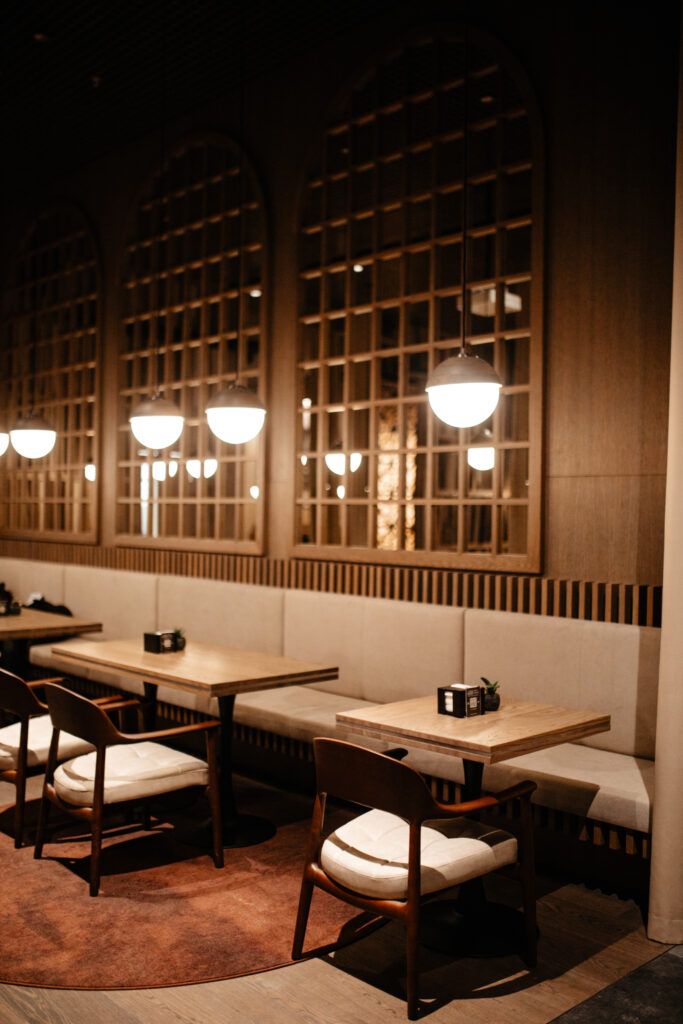 Restorano interjerą projektavo ir kūrė viena žymiausių Lietuvos dizaino ir architektūros studija „Yes.design.architecture“, o rangos darbai buvo patikėti šios srities profesionalams „ConsAliter“. Patalpos nėra tradicinės: kelių salių išplanavimas leidžia priimti daugiau nei 120 svečių, o bendras plotas siekia beveik 500 kv. m. Čia dirbs apie 40 žmonių komanda.