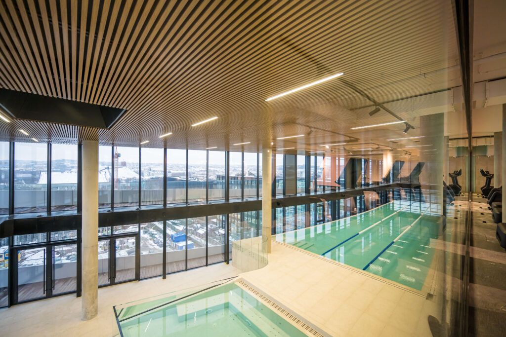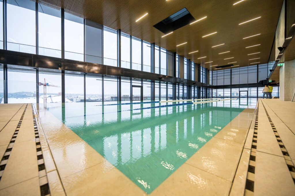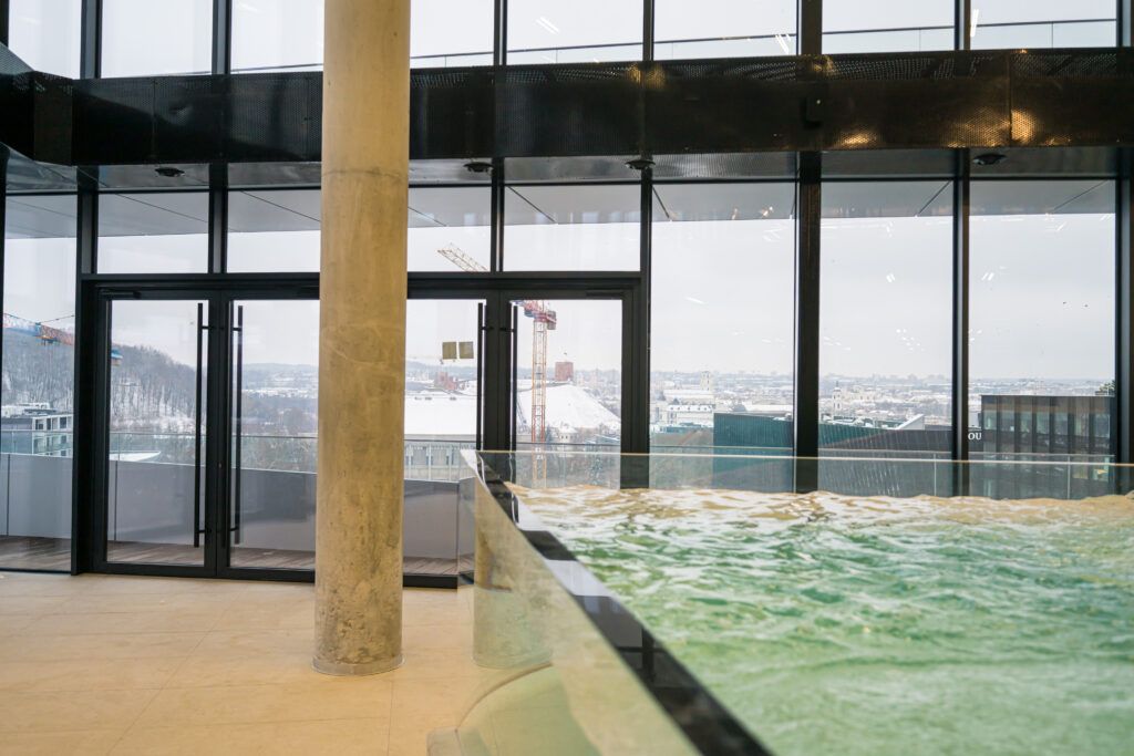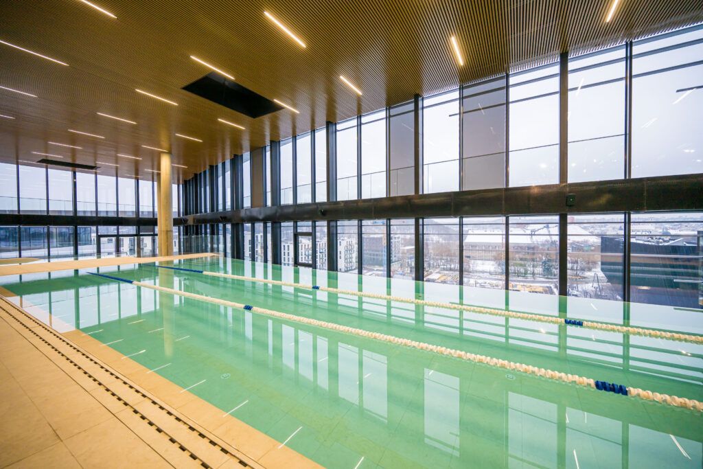 Rinktinės gatvėje jau užbaigtos verslo centro statybos. Paaiškėjo, kad viršutiniuose aukštuose įrengtos išskirtinės patalpos, kuriose baseinai, treniruoklių ir grupinių užsiėmimų salės, pirtys. Iš patalpų atsiveria nuostabūs vaizdai į sostinės senamiestį. Čia įsikurs vienas prabangiausių sporto ir laisvalaikio centras – YOUDĖK veiksmo centras.