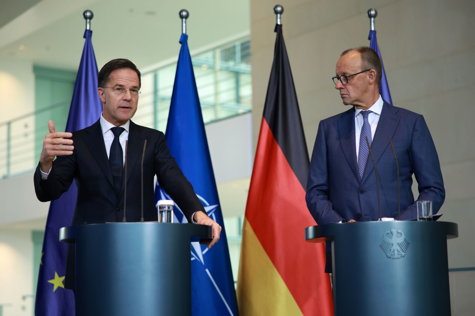 NATO generalinis sekretorius ketvirtadienį Berlyne susitiko su Vokietijos kancleriu Friedrichu Merzu. Susitikimo metu buvo aptariama derybų dėl taikos Ukrainoje eiga, Ukrainos siūlymai dėl teritorinių nuolaidų ir trečiadienį vykęs Europos lyderių pokalbis telefonu su JAV prezidentu Donaldu Trumpu.