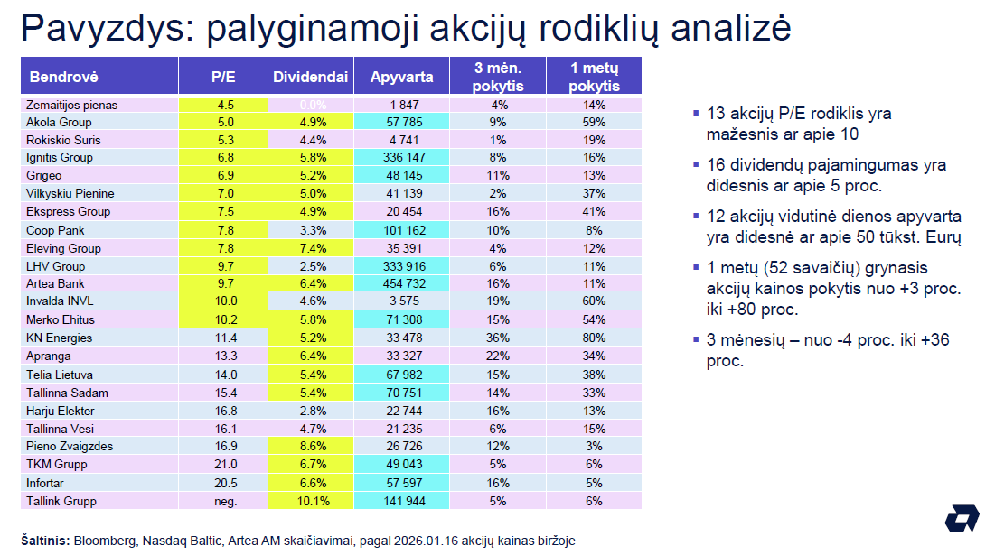 - Patrauklūs Baltijos akcijų rodikliai;