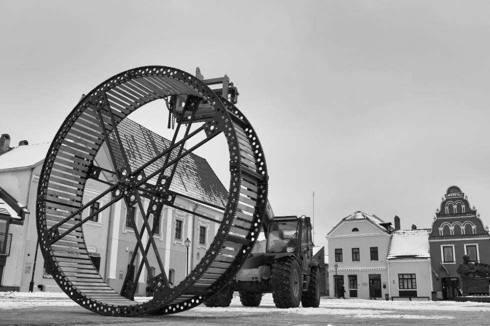 Praeiviai jau gali pamatyti ir įstabaus dydžio atidarymo renginiui „Oratorija ašis“ skirtus rekvizitus./Organizatorių nuotr.