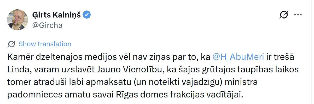 Pilsētā baumo, ka veselības ministrs Hosams Abu Meri ir kopā jau ar trešo Lindu. Soctīklā “X” par šo tēmu pie @Gircha ieraksta pasmaida ne viens vien komentētājs, taču, visticamāk, patiesībā runa ir vien par darba attiecībām.