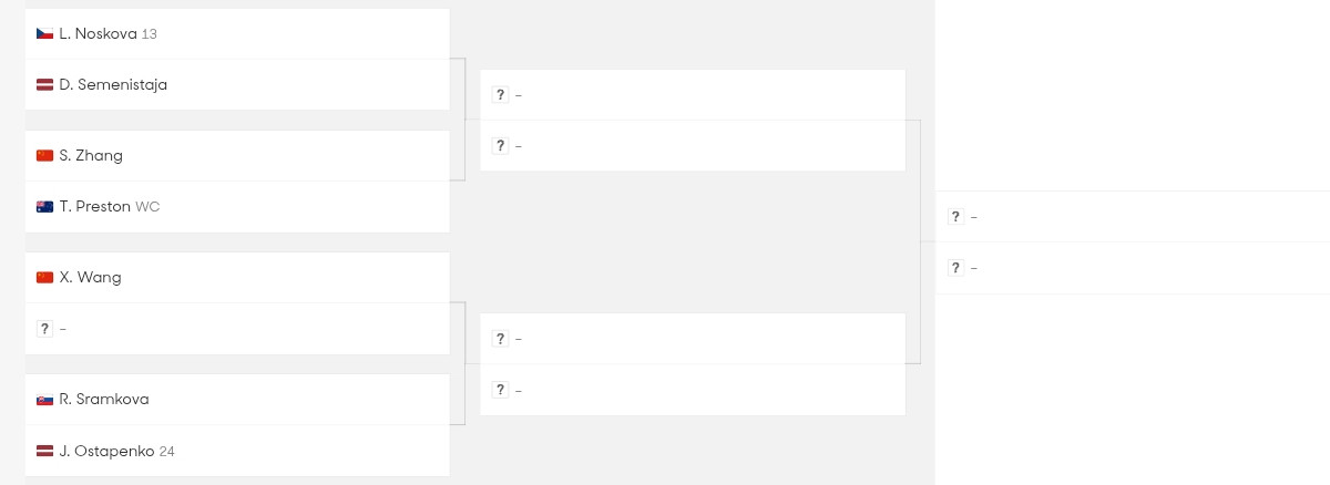 Izlozē noskaidrojās, ka turnīra 24. numurs Aļona Ostapenko (patlaban #24) vispirms cīnīsies pret slovākieti Rebeku Šramkovu (šobrīd #72), pret kuru savstarpējās spēlēs ir 3-1. Latvijas tenisiste sakrājusi sešus zaudējumus pēc kārtas un pēdējoreiz uzvarēja augustā, savukārt slovākietei šogad ir 3-2.
