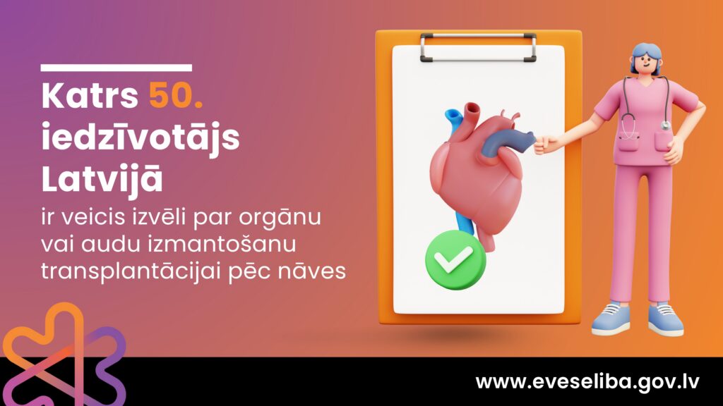 Latvijas Digitālās veselības centrs (LDVC) 2. oktobrī, piedaloties orgānu transplantācijas tēmai veltītās pastmarkas un aploksnes atklāšanas pasākumā, atgādināja, ka E-veselības portālā (www.eveseliba.gov.lv) ātri un ērti ir iespējams veikt izvēli par orgānu vai audu izmantošanu transplantācijai pēc nāves. Pašlaik šo iespēju ir izmantojuši tikai 2 % Latvijas iedzīvotāju.