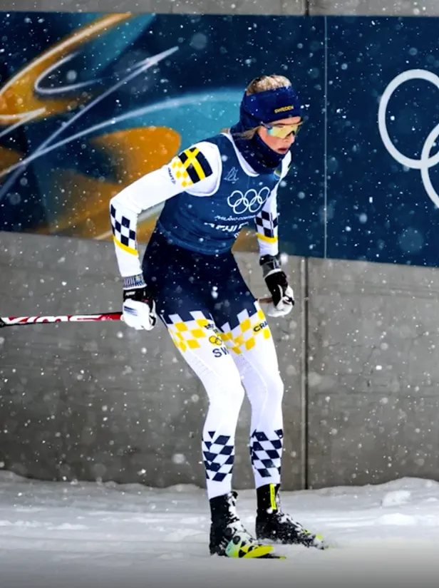 Jonna Sundlinga bija pirmā slēpotāja, kas pirmdien treniņā parādīja Zviedrijas komandas sacensību tērpu gaidāmajām olimpiskajām spēlēm.