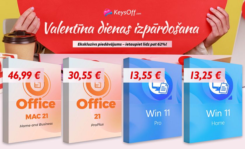 Kaut kā, neskatoties uz to, ka šķiet, ka svētki bija tikko pagājuši, jau ir pienācis laiks iegādāties vēl vairāk dāvanas. Neatkarīgi no tā, vai jūs esat kopā četrus mēnešus vai četrus gadus, parādiet viņam, ka jūs viņu novērtējat, ar nelielu mīlestības zīmi šajā Valentīna dienā. MS atslēga ir ideāla dāvana ikvienam — gan aizrautīgam spēlētājam, gan datoru iesācējam. Ja arī tu tā domā, ātri noklikšķini uz Keysoff Valentīna dienas izpārdošanu, lai iegūtu Office un WinOS atslēgas par neticami zemām cenām!