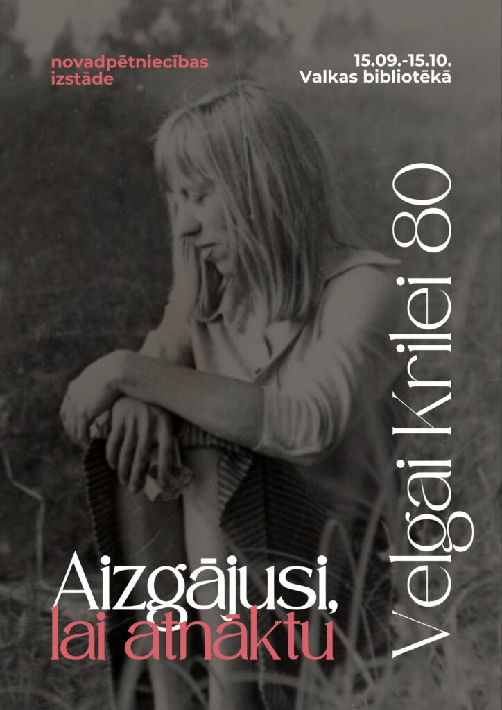 Atzīmējot Velgas Kriles 80. gadskārtu, Valkas bibliotēkā līdz 15. oktobrim apskatāma dzejniecei veltīta novadpētniecības izstāde “Aizgājusi, lai atnāktu”.
