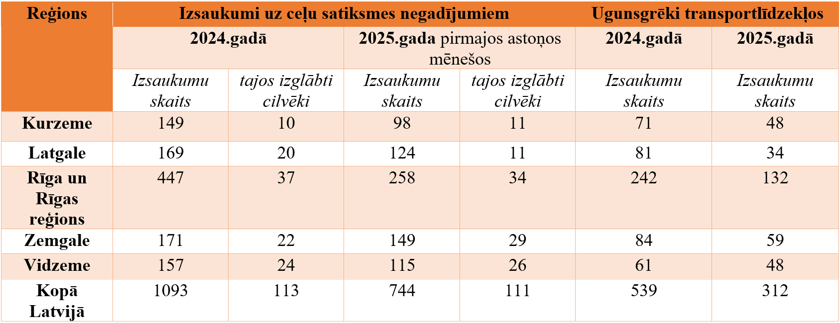 2025.gada pirmajos astoņos mēnešos ugunsdzēsēji glābēji devās uz 744 ceļu satiksmes negadījumu seku likvidēšanas darbiem un tajos izglābti 111 cilvēki, kas ir gandrīz tikpat, cik aizvadītajā gadā kopumā, informē Valsts ugunsdzēsības un glābšanas dienestā (VUGD).