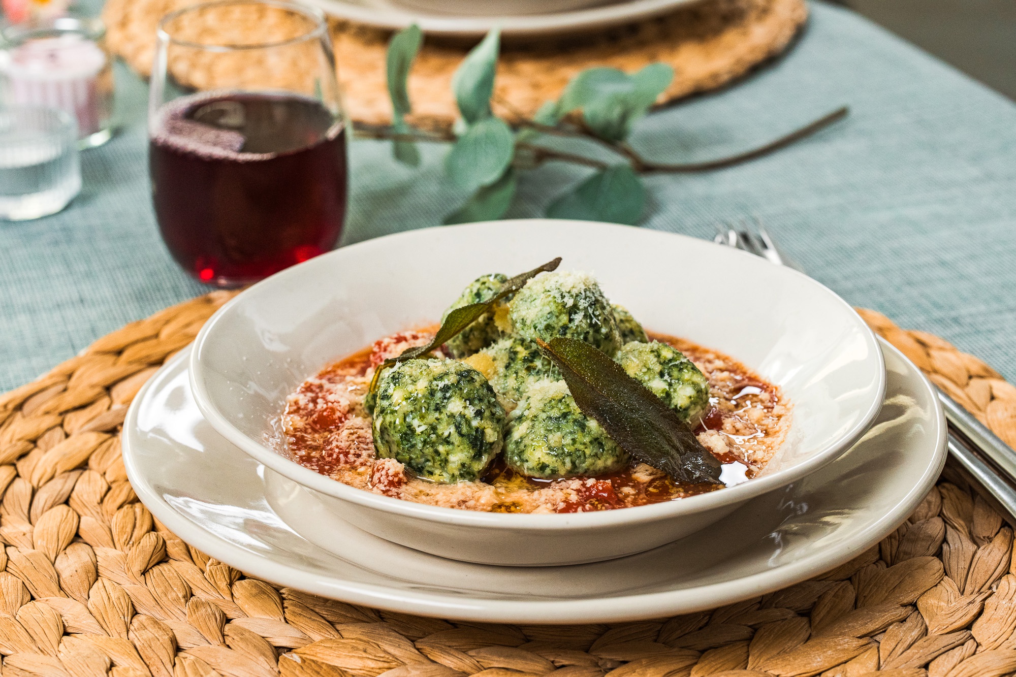 Recepte paredz biezpienu, spinātus, sieru, olas, rīvmaizi un tomātu mērci. Bumbiņas tiek vārītas ūdenī, pēc tam pasniegtas ar aromātisku tomātu mērci un svaigām salvijas lapām. Vienkārši, skaisti un garšīgi – tieši tā, kā Māra saka: “Ēdiens, kas silda sirdi un saliedē cilvēkus.”