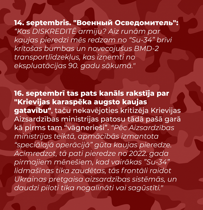 “Telegram” blogeri – tādi kā Rybar, Военный Осведомитель (milinfolive) vai minētais sashakot – var atļauties nelieku kritiku (parasti ne vairāk kā 5 – 10 procentu satura). Taču kopējā līnija saglabājas: atbalstīt varu.