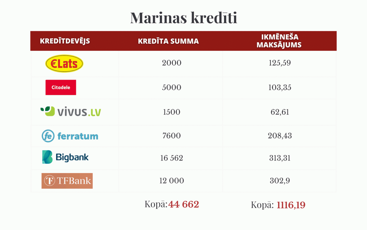 Tobrīd divās dienās Marina ātrajos kredītos jau bija paņēmusi 32 662 eiro. Bija arī pāris atteikumu.