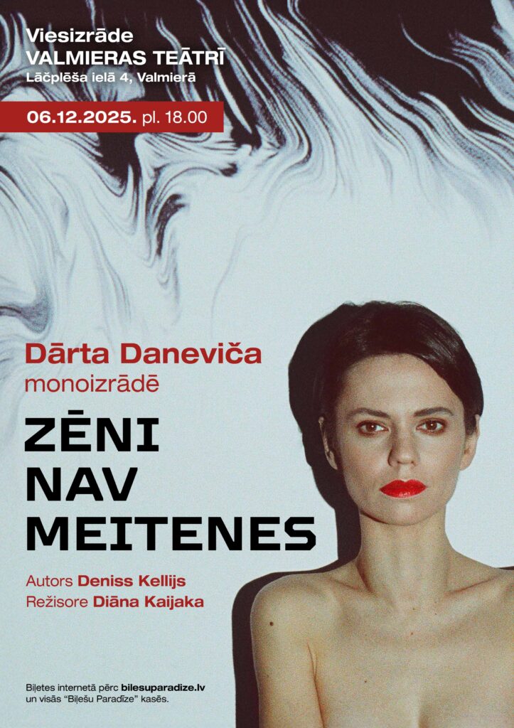 Sestdien, 6. decembrī, pl. 18.00 Valmieras teātra lielajā zālē būs skatāma aktrises Dārtas Danevičas monoizrāde “Zēni nav meitenes”.