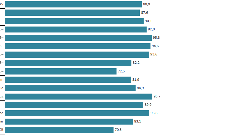 Visaktīvāk eID izmanto jaunākā paaudze – vecumā no 25 līdz 34 gadiem to lieto 95,3 %, bet vecākajās grupās lietošana ir mazāk izplatīta. Starp nodarbinātajiem eID izmanto 93,8 %, kas apliecina šī rīka nozīmi gan darbā, gan ikdienas pakalpojumu saņemšanā.