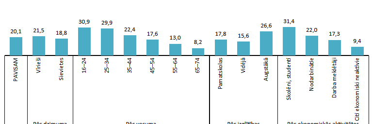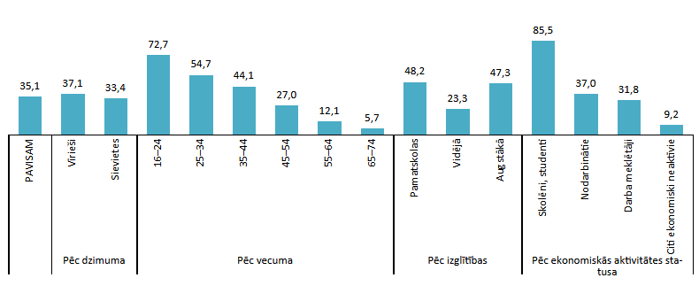 (procenti no interneta lietotājiem 16–74 gadu vecumā attiecīgajā grupā)