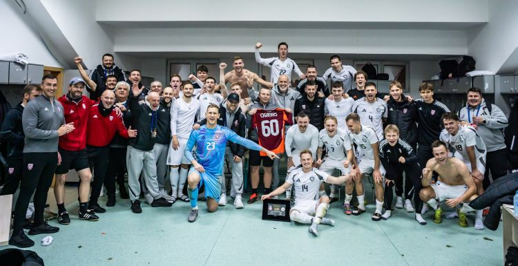 Izlase sveic Andreju Cigaņiku ar rekordu. Foto: LFF