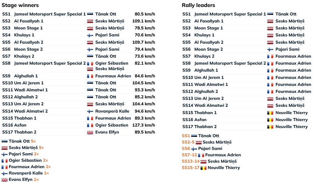 Saūda Arābijas WRC posma ātrumposmu statistika: