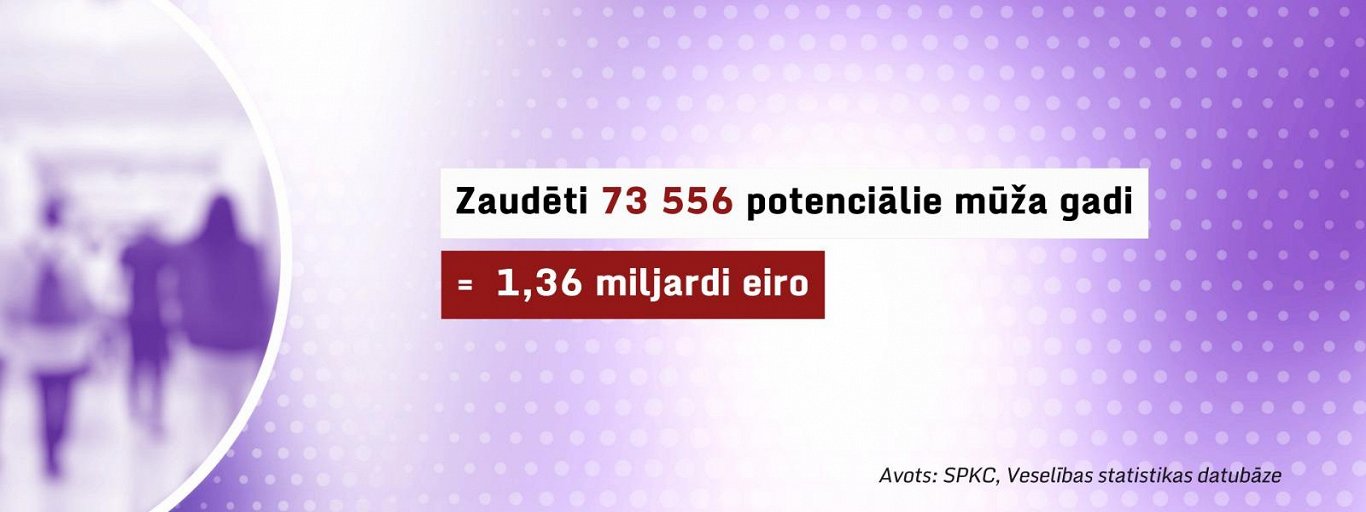 Aprēķināts, ka Latvijā 2023. gadā tika zaudēti 73 556 potenciālie mūža gadi, kas saistīti ar ekonomiskiem zaudējumiem 1,36 miljardu eiro vērtībā jeb 3,37 % no valsts iekšzemes kopprodukta.