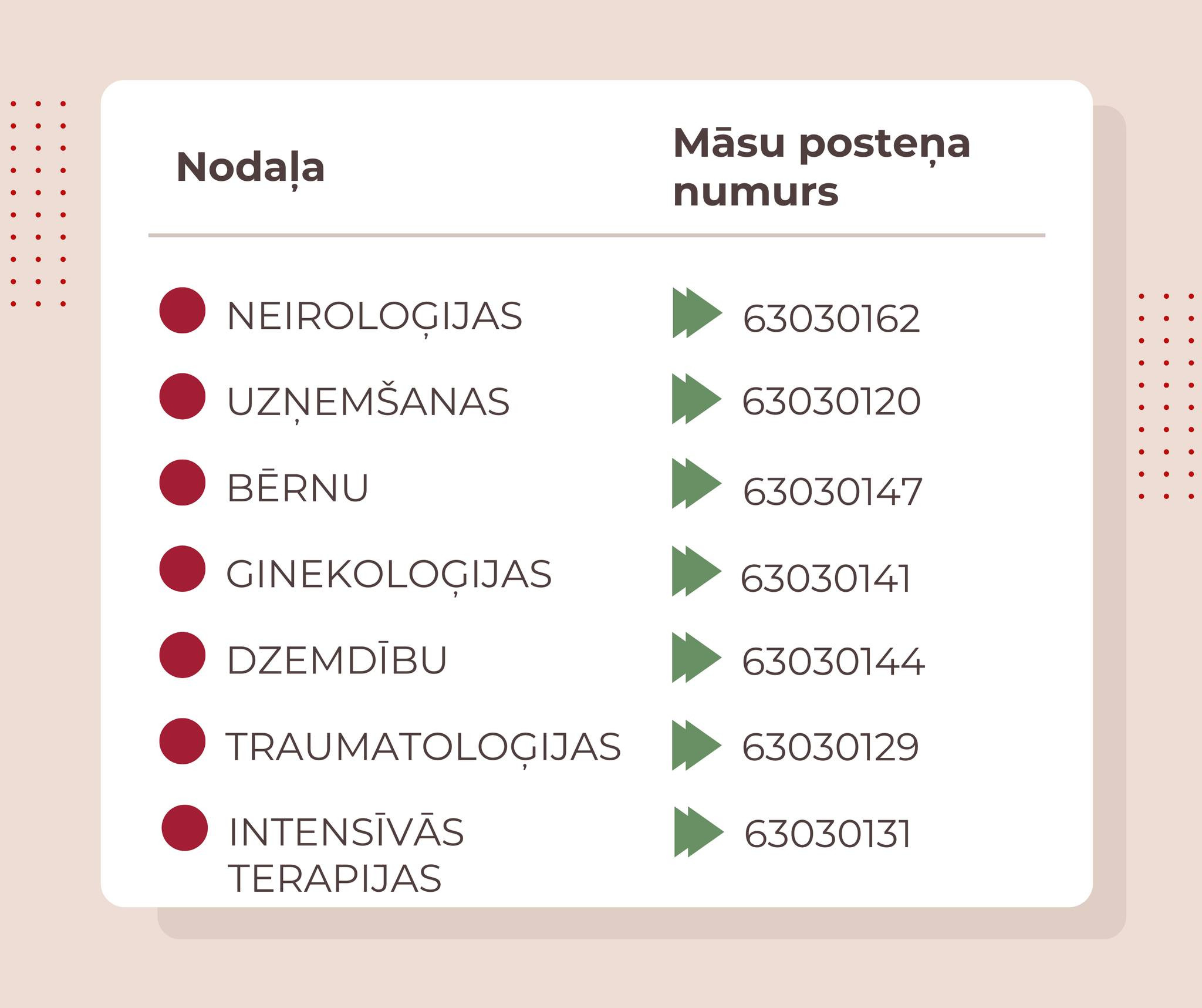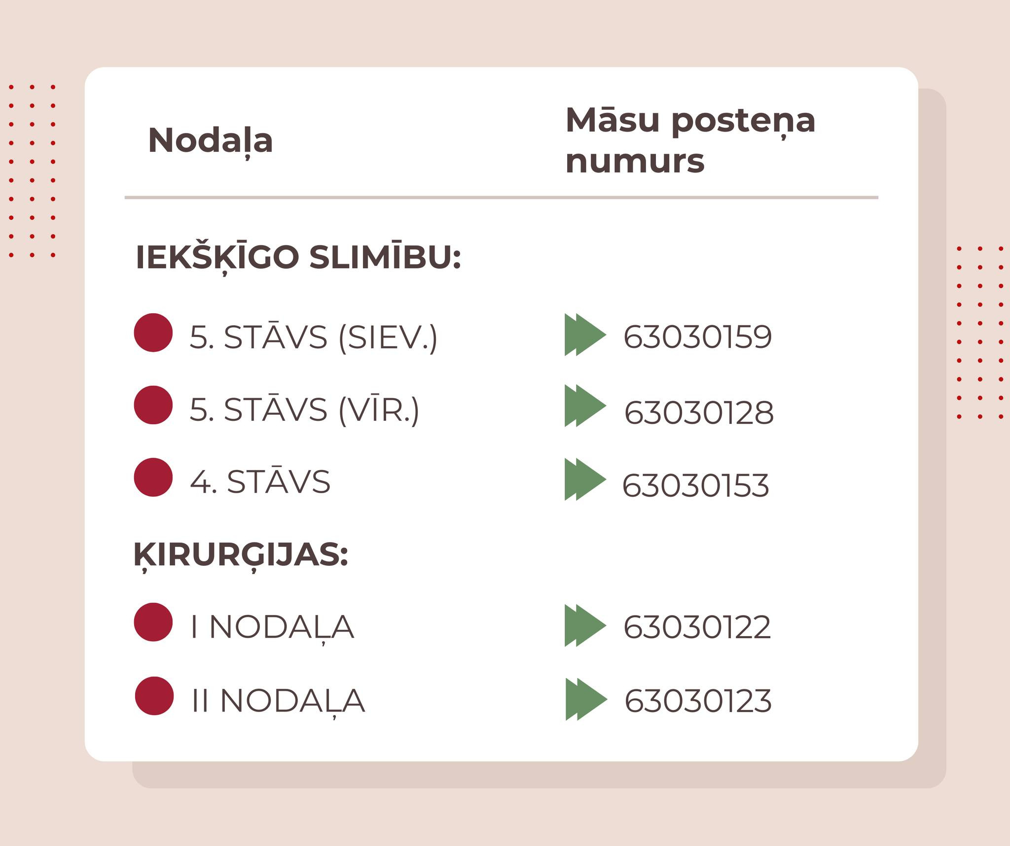 Vizīti lūgums pieteikt, zvanot uz nodaļu māsu posteņu tālruņiem!