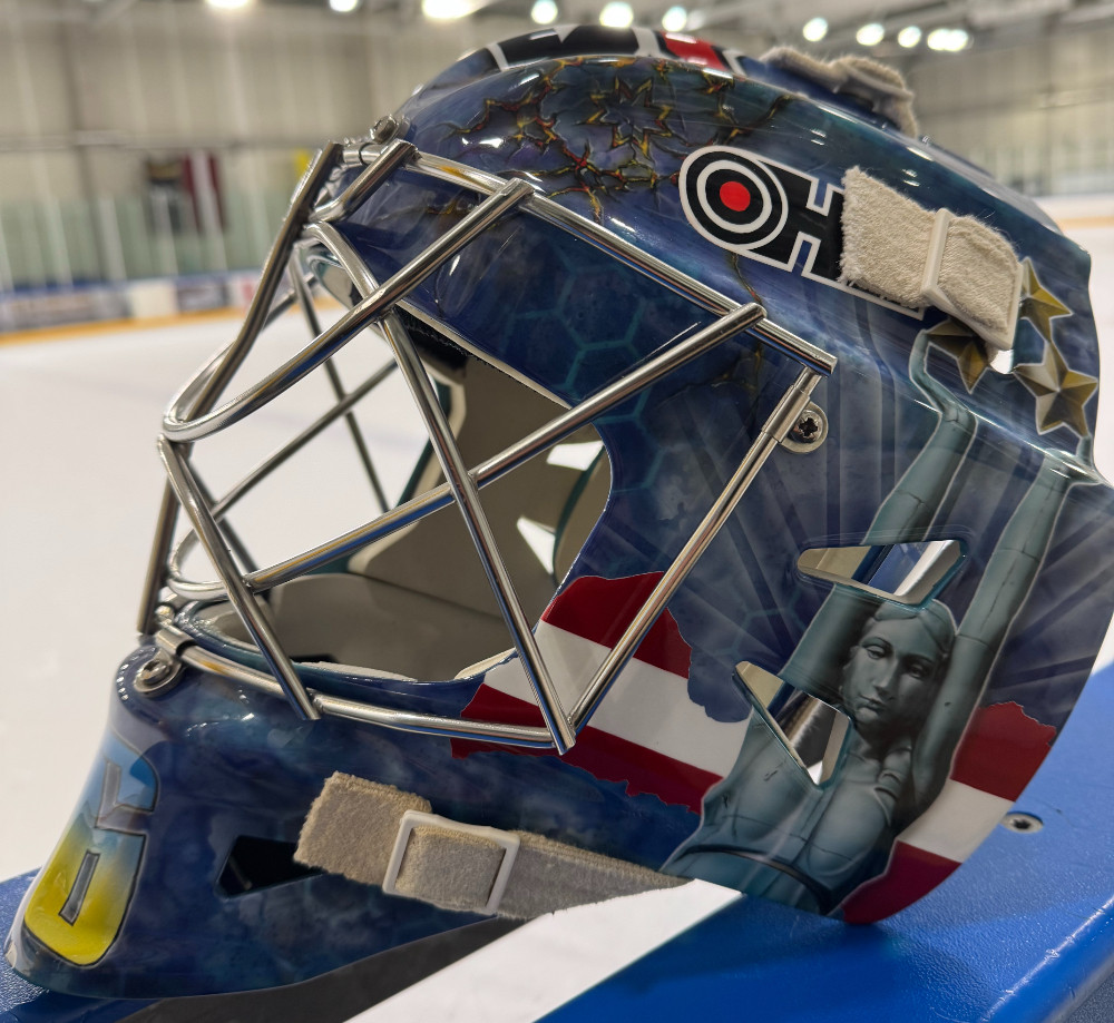 “Es iedodu idejas, un tālāk jau mākslinieks pats visu saliek. Gala vārds parasti pieder māksliniekam,” stāstīja Voris, reizē demonstrējot, kas uzliks uz ķiveres. “Aizmugurē ir Rīgas panorāma, mīļo cilvēku vārdi, arī zivs, lai lielās līdakas ķeras. Vienā pusē Lāčplēsis, tad ir latviešu spēka zīmes, komandas logo, numurs, Mildiņa un Latvijas kontūra. Vienkārši, bet es uzskatu, ka sanācis smuki.”