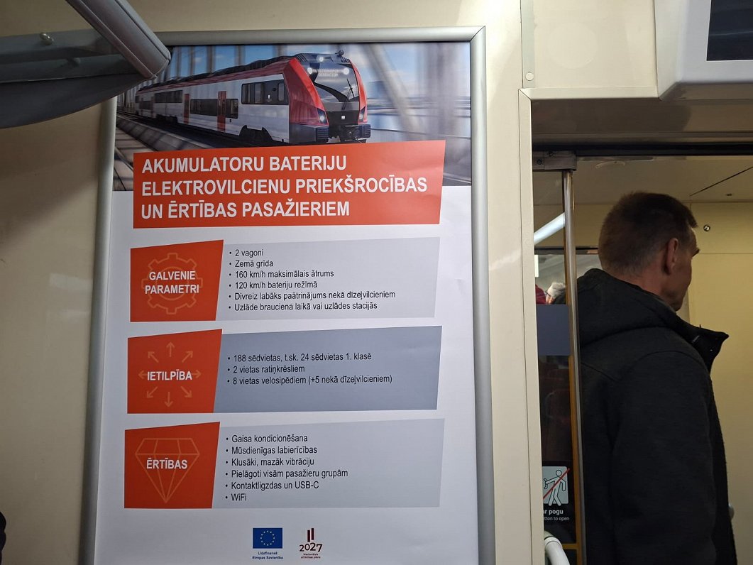 “Akumulatoru bateriju elektrovilcieni Latvijai ir būtiska investīcija, lai stiprinātu dzelzceļa kā sabiedriskā transporta mugurkaula lomu un uzlabotu pasažieru pārvadājumu kvalitāti un pieejamību. Brauciena laikā pasažieri varēs novērtēt visas mūsdienu ērtības: klimata kontroli, samazinātu troksni un vibrācijas, mūsdienīgas labierīcības, kontaktligzdas un USB-C uzlādes vietas. Jaunie vilcieni būs pielāgoti visām pasažieru grupām un atbildīs jaunākajām Eiropas piekļūstamības prasībām, tajos būs mūsdienīga apziņošanas sistēma un vietas pasažieriem ar ratiņkrēslu. Tiks uzlaboti apstākļi arī ceļotājiem ar divriteņiem. Ja vecajos dīzeļvilcienos tipiski ir augstā grīda un tikai 3 vietas velosipēdiem, tad jaunajos bateriju vilcienos zemās grīdas zonā ir paredzētas vietas 8 velosipēdiem, tostarp 4 vertikāli novietotiem un 4 horizontāli novietotiem,” pauda Lapiņš.