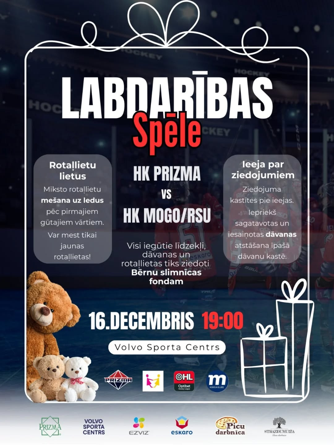 • Spēle norisināsies sadarbībā ar Bērnu slimnīcas fondu. Ieeja par ziedojumiem.