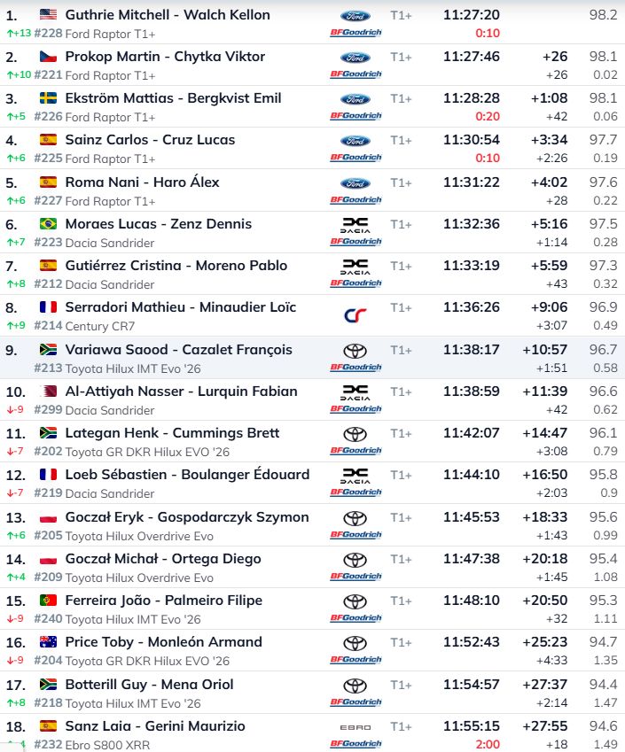 Pēc Dakaras rallija šīs dienas posma par jauno līderi vieglo automašīnu klasē kļuvis ASV sportists Mičs Gutrijs, kurš pēc finiša atzina, ka nav gaidījis šādu rezultātu. “Tā ir mana pirmā uzvara posmā Ultimate klasē. Godīgi sakot, pat nezinu, ko teikt. Es to tiešām negaidīju – mums vienkārši bija ļoti tīra diena. Startējām no beigām, un stūrmanis lieliski tika galā ar navigāciju. Bija daudz sarežģītu vietu, bet mums nebija nevienas pārsistas riepas. Automašīna darbojās lieliski, tāpēc mēs visu dienu vienkārši turpinājām braukt. Ja tā turpināsies, tad šī ir labākā diena vispār,” tā Mičs Gutrijs.