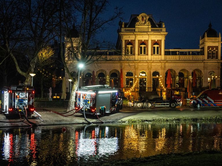 ANPDe brandweer pompte vannacht water uit een vijver in het Vondelpark om de brand in de Vondelkerk te kunnen blussen
