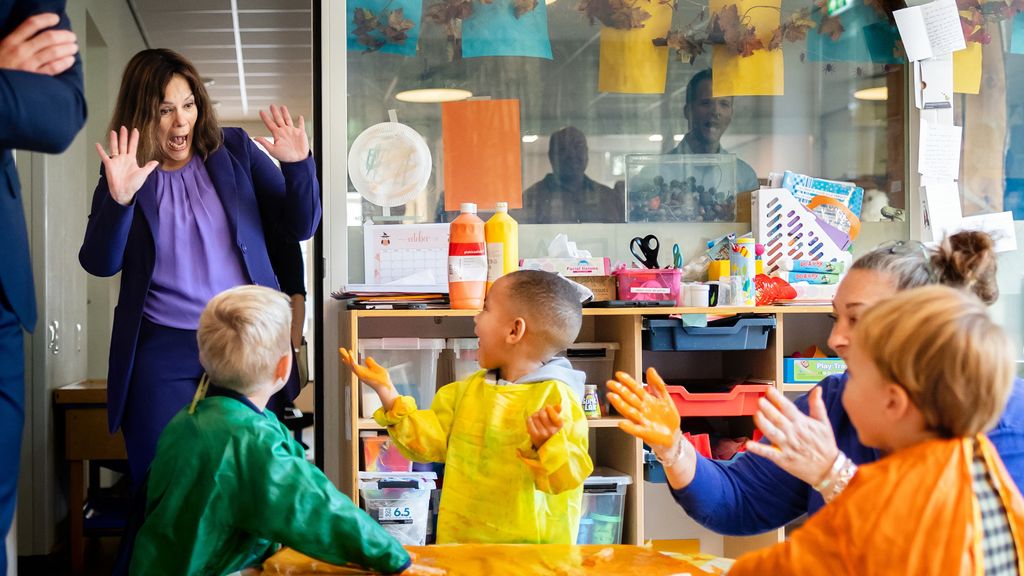 ANPStaatssecretaris Palmen (Herstel en Toeslagen) tijdens een werkbezoek aan een kinderopvang in Den Haag