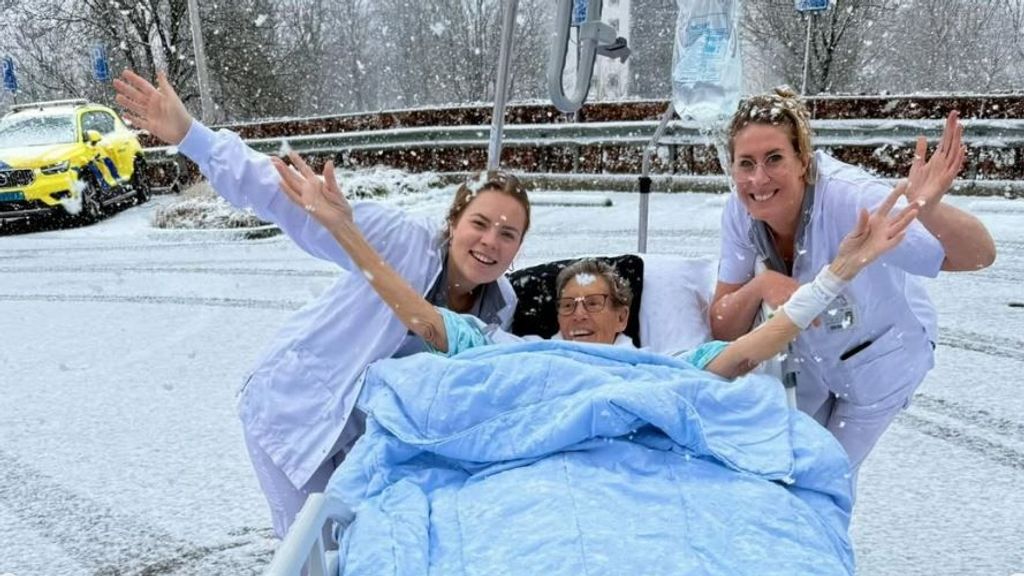 Franci is altijd dol op sneeuw geweest, meldt Omroep Brabant. De afgelopen maand in het ziekenhuis vertelde ze de verpleegkundigen meermaals hoezeer ze genoot van haar wintersportvakanties. Dus toen ze vanochtend wakker werd en vanuit haar bed zag dat het sneeuwde, had ze maar één wens: naar buiten.