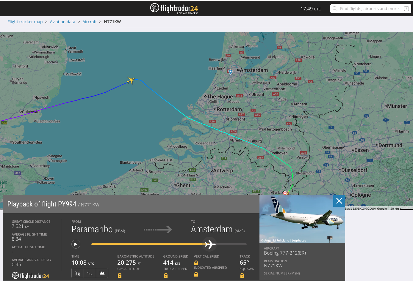 N771KW stond gepland om 10:40 uur Nederlandse tijd te landen op Schiphol. Het toestel vloog om 11:08 uur nog op koers richting Amsterdam, maar draaide kort daarna rechtsom voor een landing op Maastricht Airport. Daar landde het vliegtuig uiteindelijk om 11:40 uur.