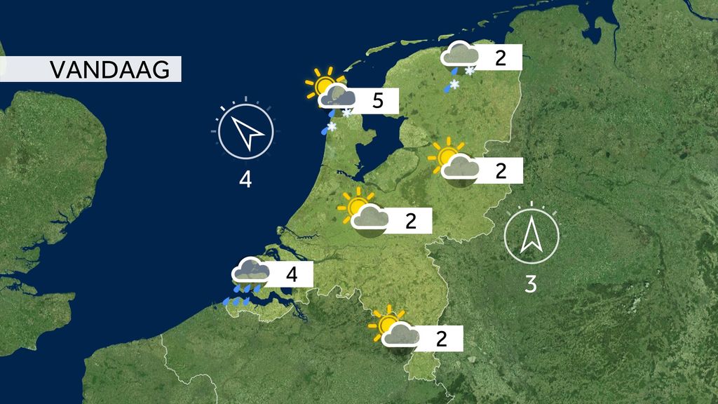 Eerst het weerbericht: vooral in het noorden start de dag eerst nog met winterse buien. In de middag neemt de bewolking toe en in de avond volgt regen, die in het noorden overgaat in natte sneeuw. Het wordt zo’n 1 tot 3 graden.